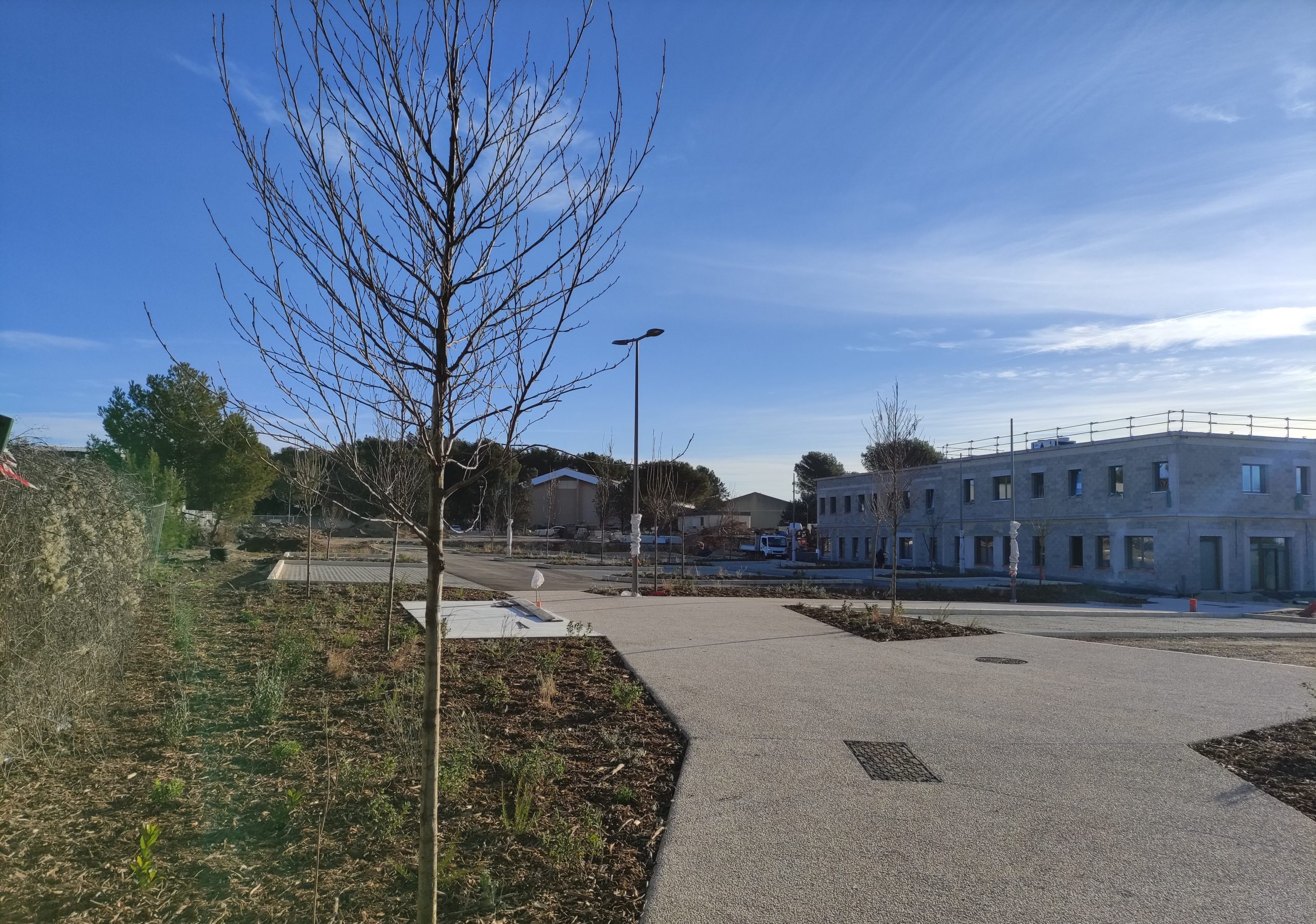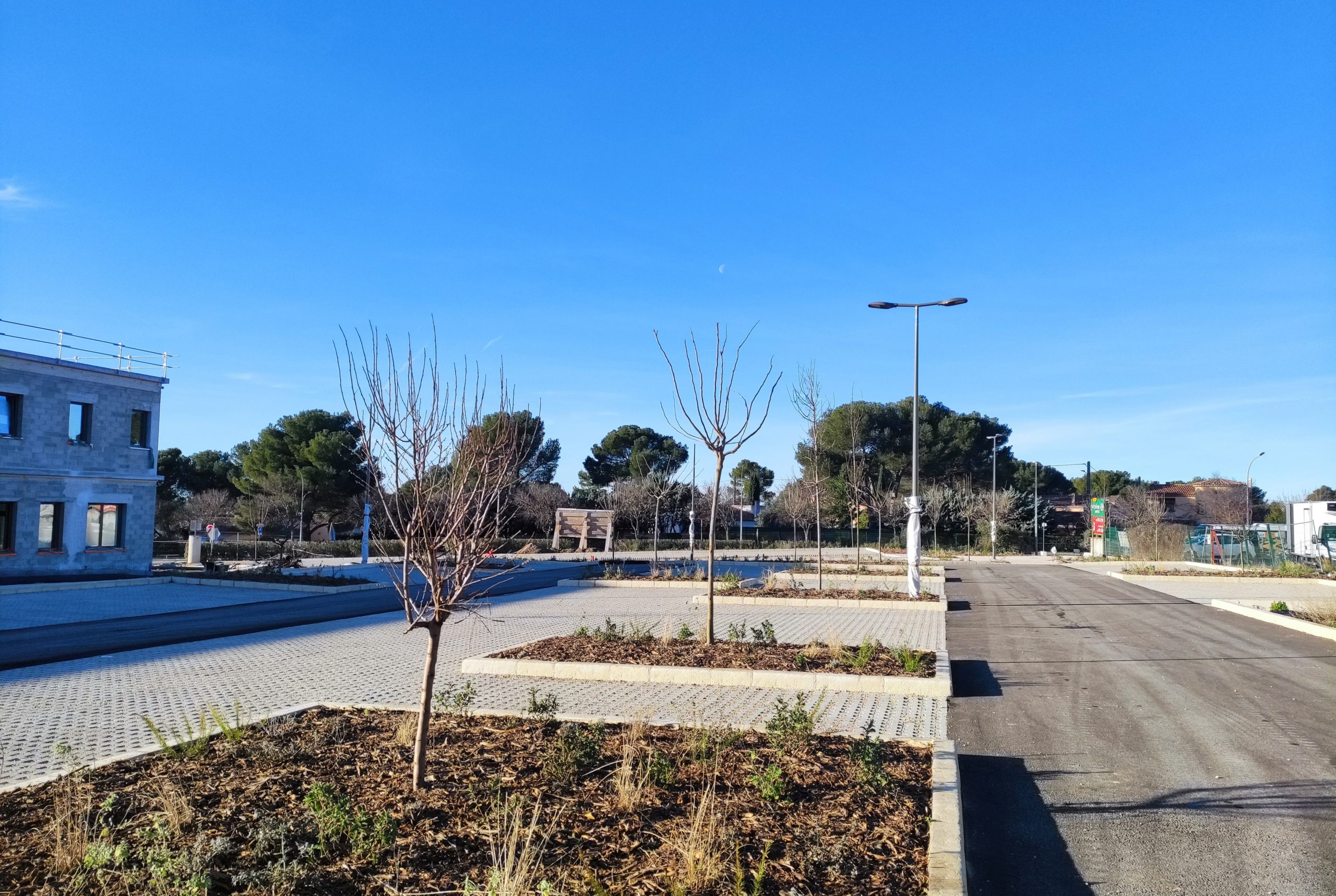 Futur parking relais : dans le cadre des aménagements paysagers comprenant 75 places de stationnement, 34 arbres de hautes tiges 3,5 m de hauteur ont été plantés cette semaine. Différentes essences méditerranéennes ont été retenues dans un souci de biodiversité :