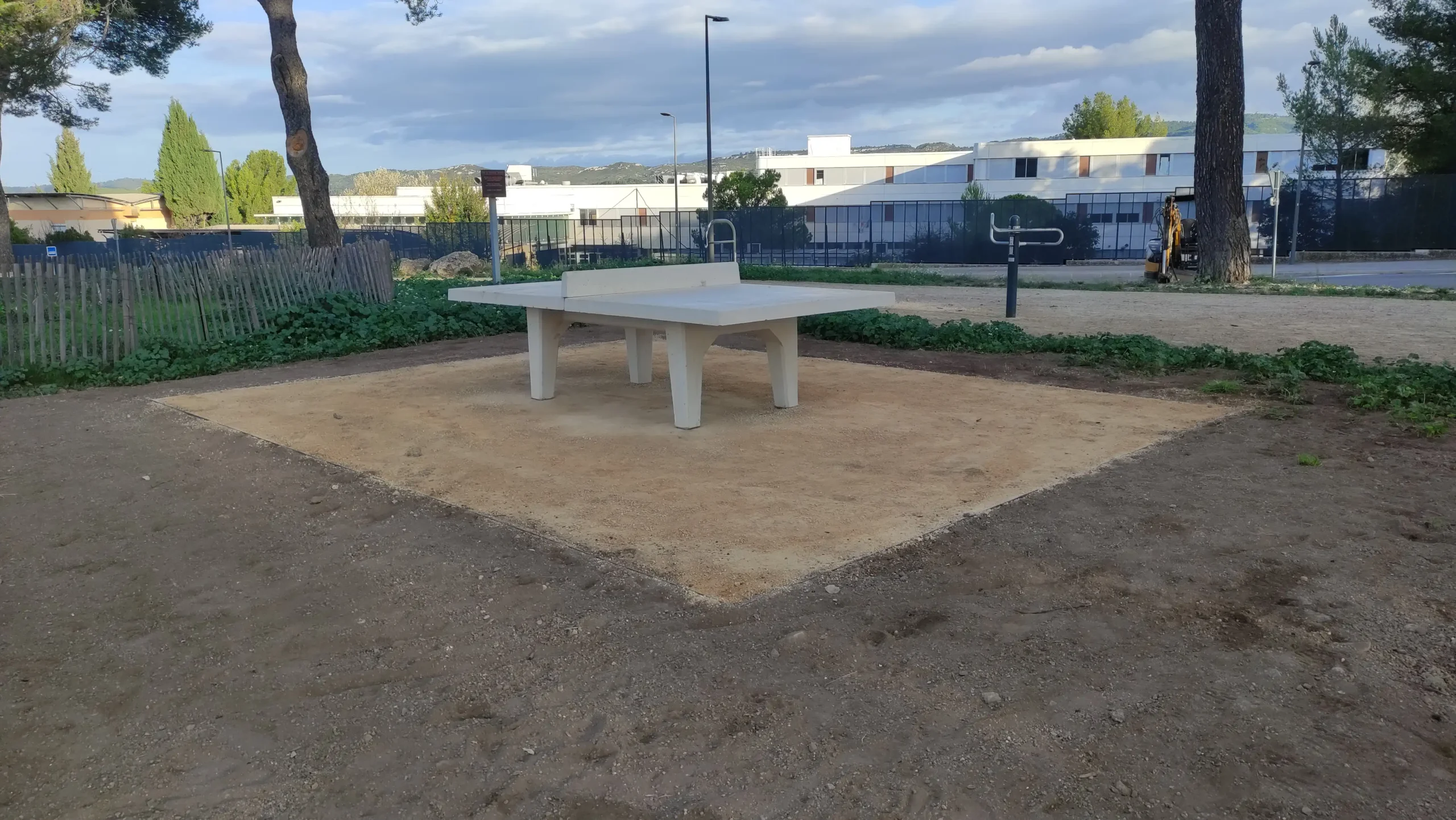 Durant les dernières vacances scolaires, une table de ping-pong en béton blanc a été installée au Parcours de Santé.