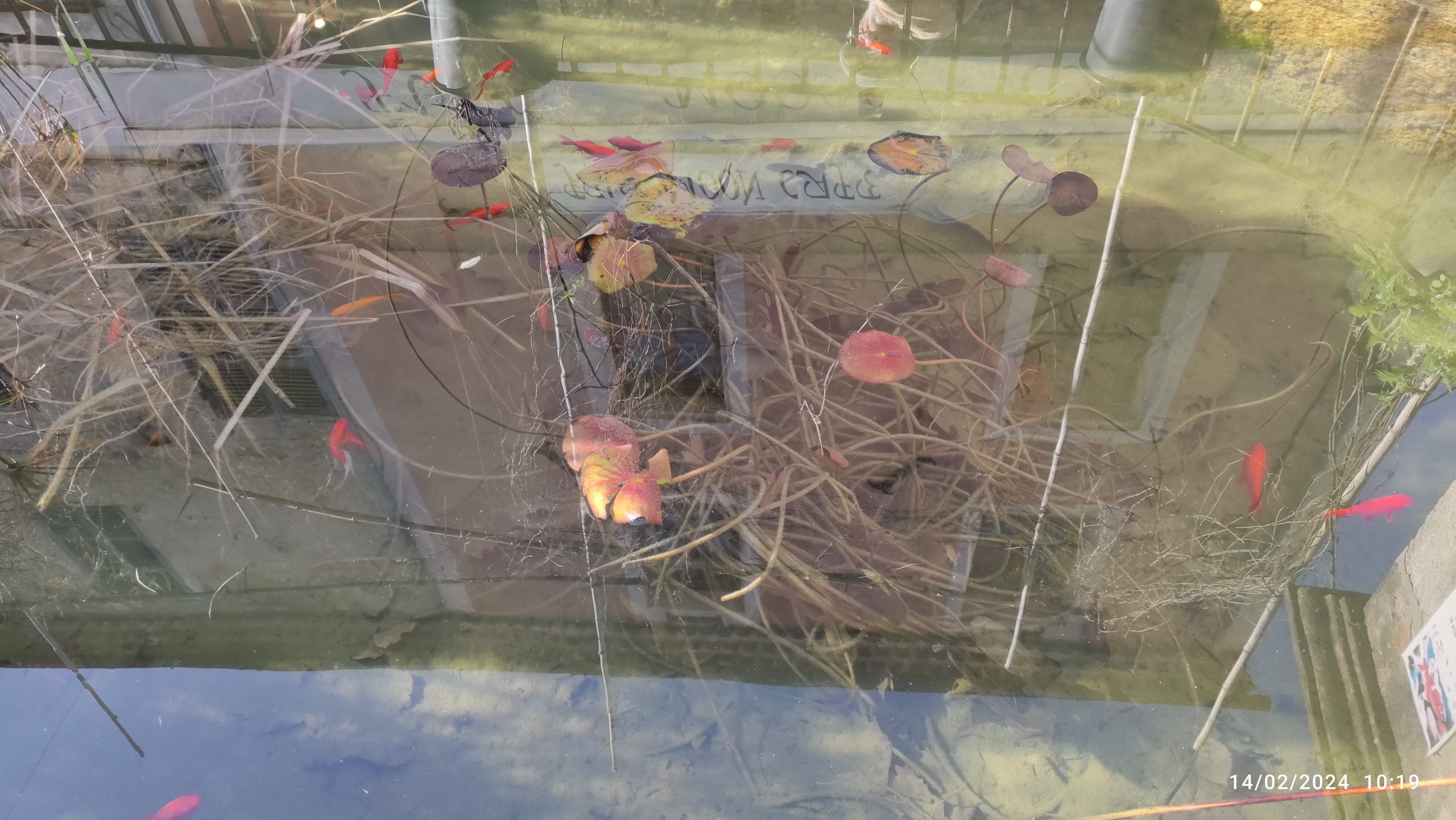 Concernant la fontaine, un réajustement de son niveau d’eau à partir du réseau incendie est fait régulièrement par les agents communaux, permettant de ne déplorer aucune mortalité de poissons à ce jour (photos 4 et 5).