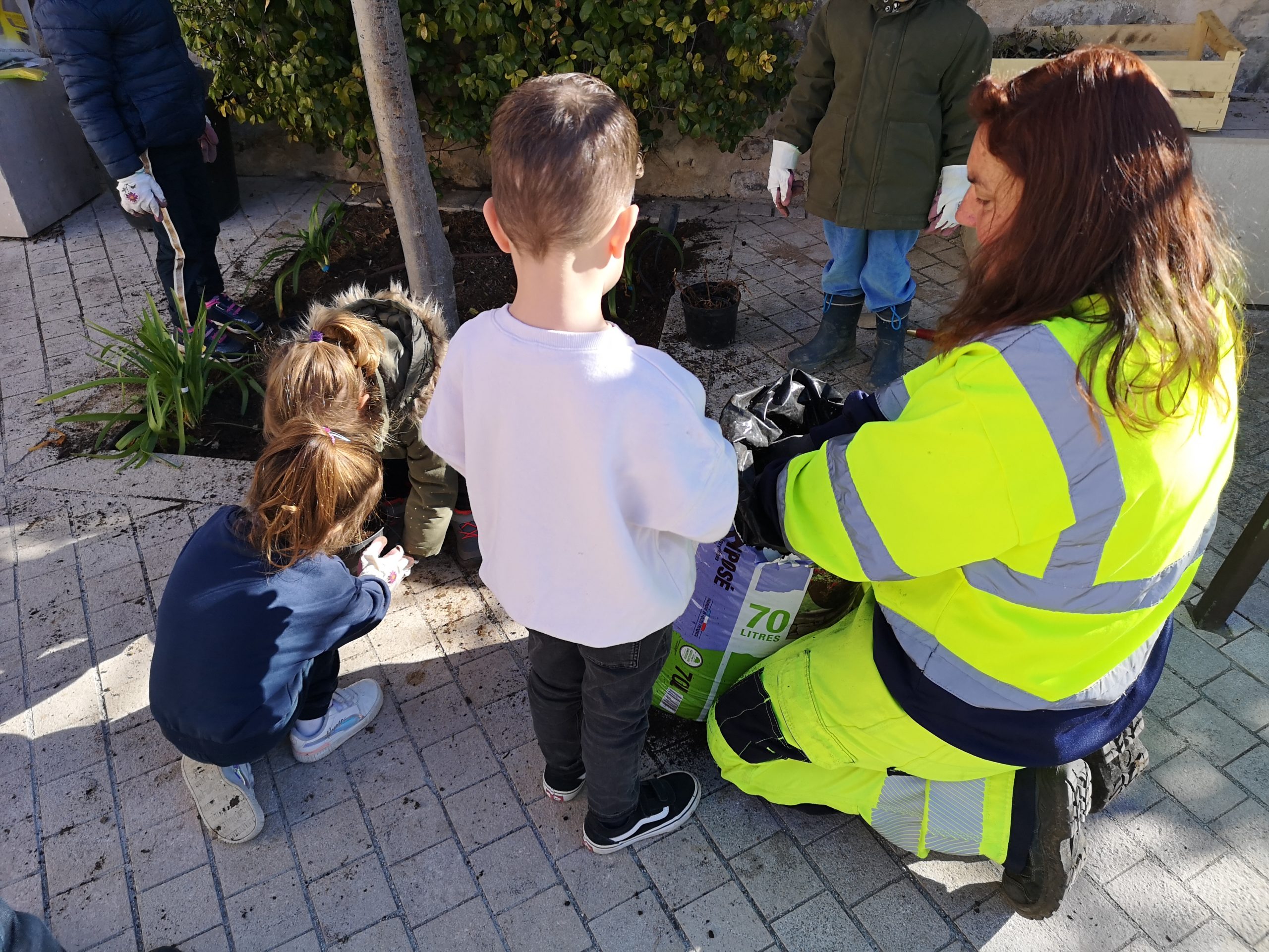 La semaine dernière les enfants de petite et moyenne section de l’école la Ventarelle ont planté diverses espèces (1 nandina, 7 lantanas, 8 agapanthes bleues et 7 agapanthes blanches) sur la place des Héros et Martyrs.