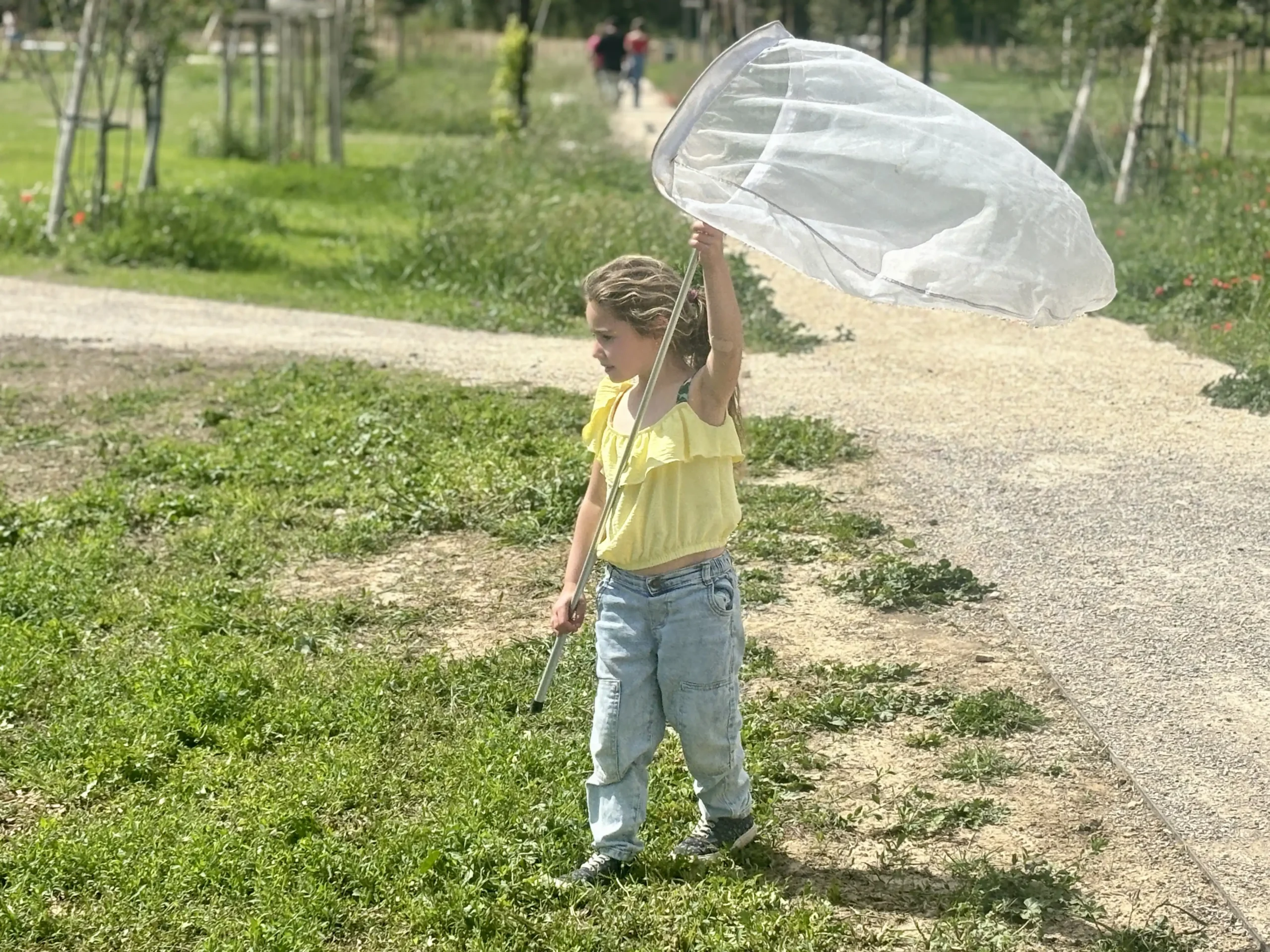 Équipés de filets à papillons, les enfants sont ensuite partis à la chasse aux lépidoptères pour pouvoir les observer de près… avant de leur rendre leur liberté.