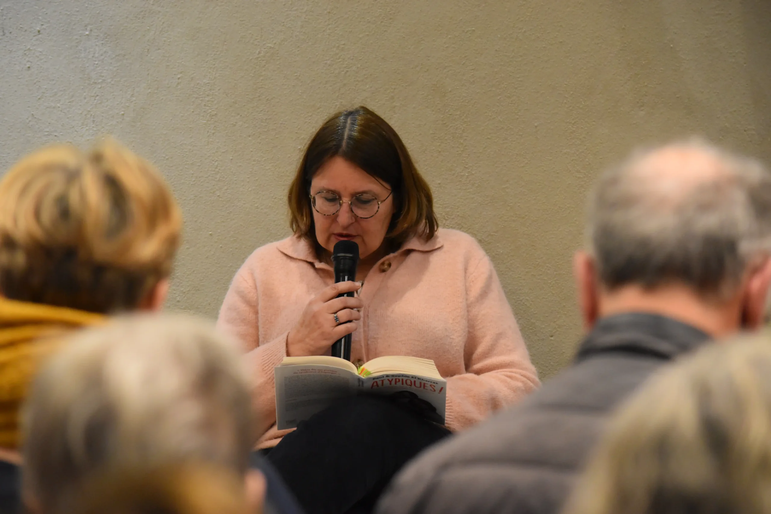La fin de la rencontre a été marquée par deux moments émouvants : l’intervention d’un jeune homme autiste qui a souhaité lire un texte pour partager son expérience, puis la lecture, par Sophie El Kharrat, des lignes finales du livre Atypiques !.