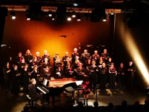 Les 30 choristes, dirigés par Marion SCHURR, ont offert au public un voyage musical mêlant airs d’opéra, musiques de films et chansons populaires, revisités pour un concert accessible à tous.