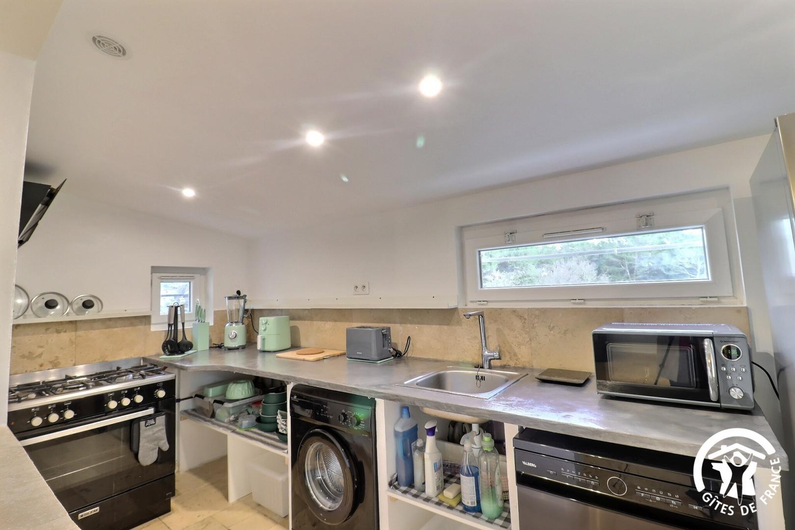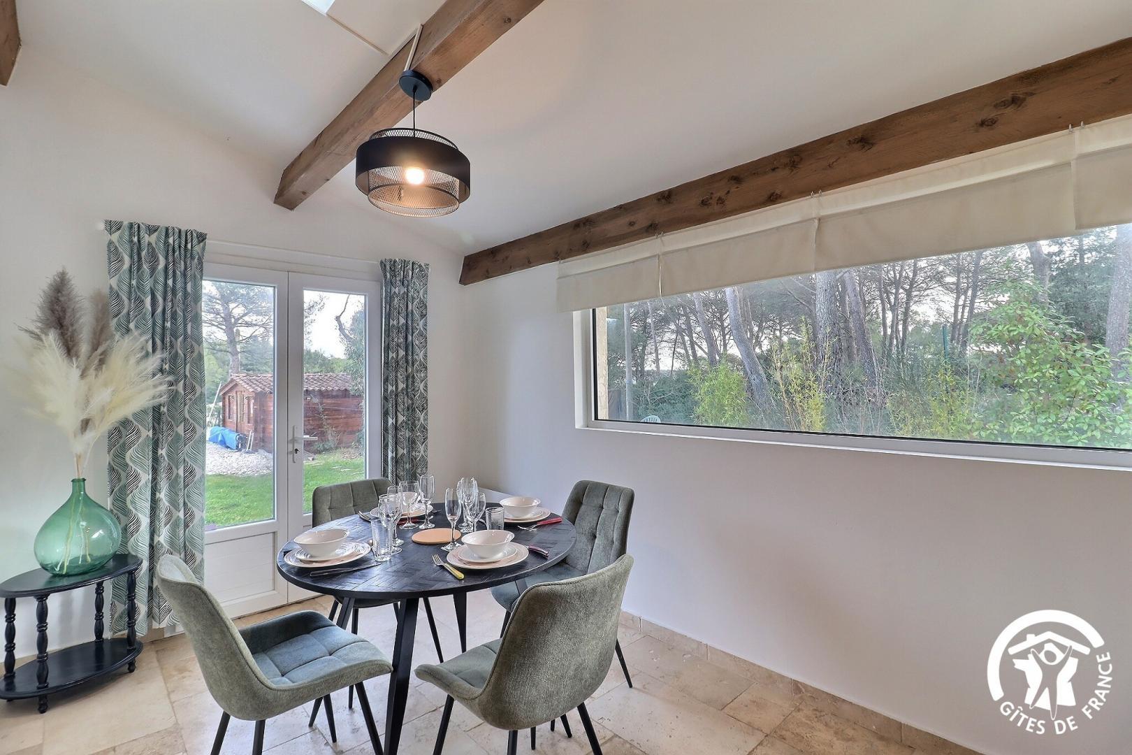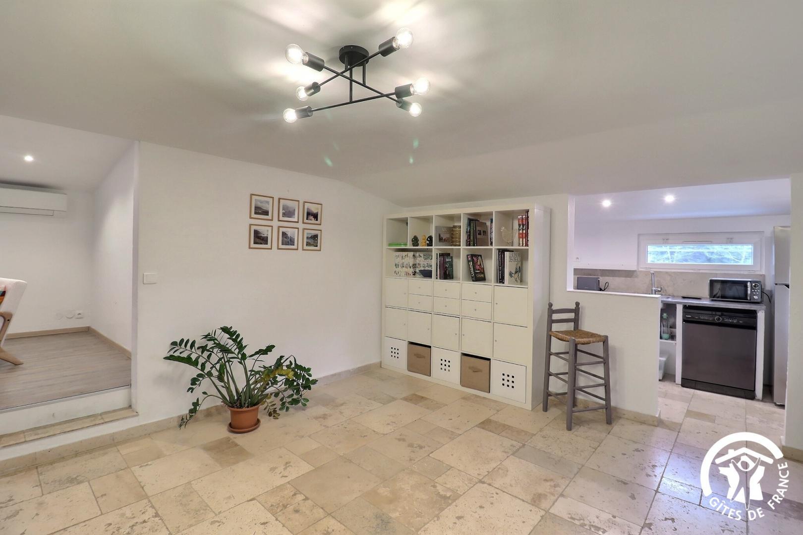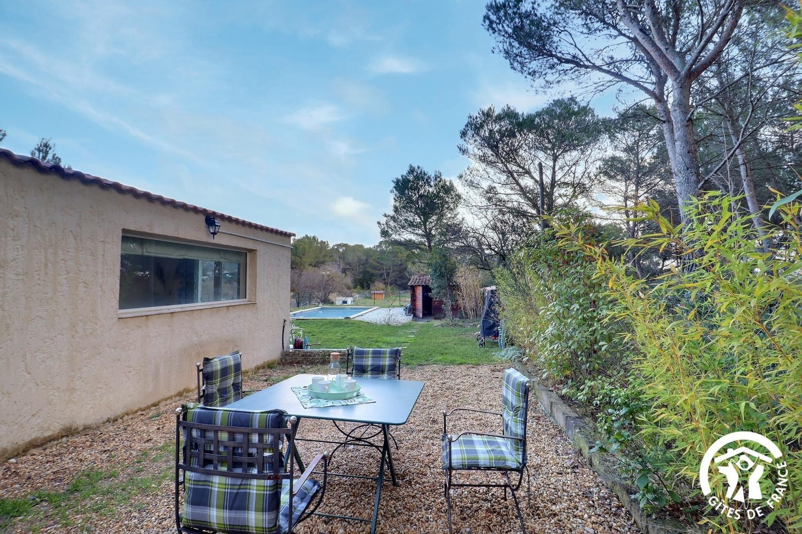 Niché dans la paisible campagne de Lambesc, le gîte Calista tout confort est l'endroit idéal pour une escapade provençale en couple, en famille ou entre amis. Vous profiterez d'un jardin clos agréable d'environ 1000m² et d'une piscine (8x4m fond progressif max 1m50, au chlore, en eau toute l'année et protégée par une alarme) parfaite pour se rafraîchir lors des chaudes journées d'été. Un espace détente vous permettra de savourer le calme environnant, bercé par les sons de la nature. Idéalement situé, le gîte permet de découvrir les charmes de la Provence : marchés locaux, villages typiques, randonnées, et sites culturels d'Aix-en-Provence à la côte méditerranéenne. Les animaux de compagnie sont les bienvenus, afin que toute la famille puisse profiter du séjour. De nombreux chemins de promenade sont accessibles à proximité. Un lieu authentique et reposant pour des vacances placées sous le signe de la détente et de la douceur de vivre provençale Le gîte est composé de : - Une entrée sur salle à manger, hall avec bibliothèque donnant sur une cuisine ouverte équipée avec réfrigérateur-congélateur, piano 5 feux avec four, micro-onde, machine à café filtre et à dosette Nespresso, bouilloire, grille-pain et divers appareils électroménager, une marche pour accéder ensuite à l'espace salon climatisé avec canapé, 2 fauteuils, TV et coin bureau. - Accessible après une marche, une chambre avec un lit 160x200 et une armoire - Également accessible après une marche, une chambre avec deux lits 90x200 et une penderie - Un WC - Une salle d'eau avec douche à l'italienne et meuble double vasque Parking privatif sur la propriété, WIFI. Ménage, draps et linge de toilette inclus. Animaux acceptés à la demande aux propriétaires.