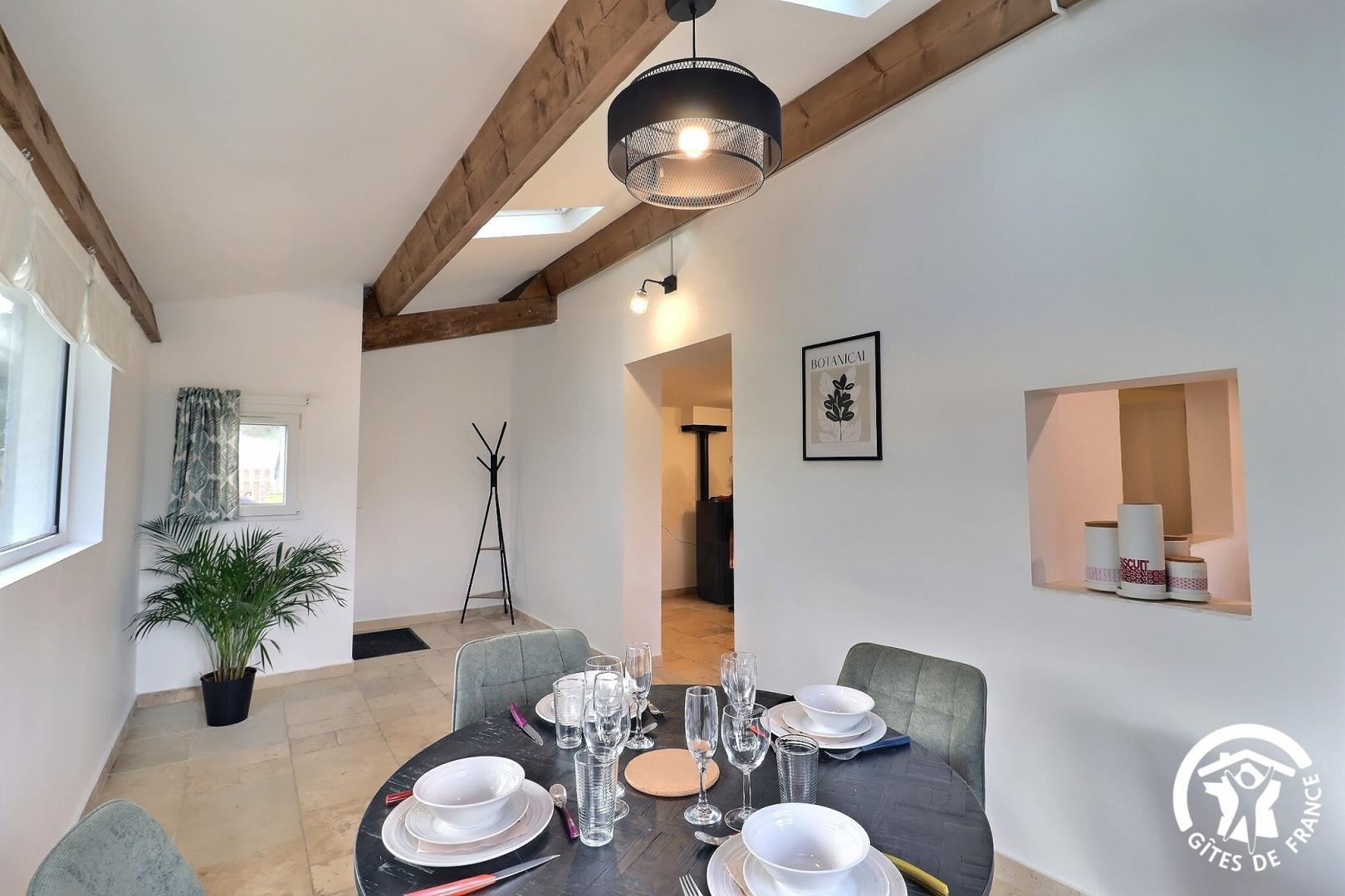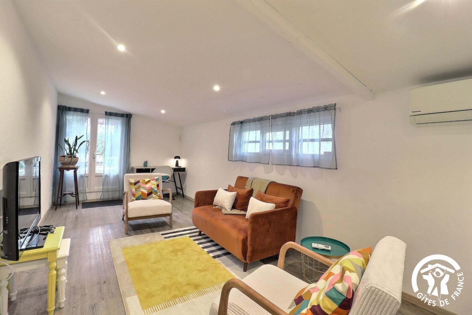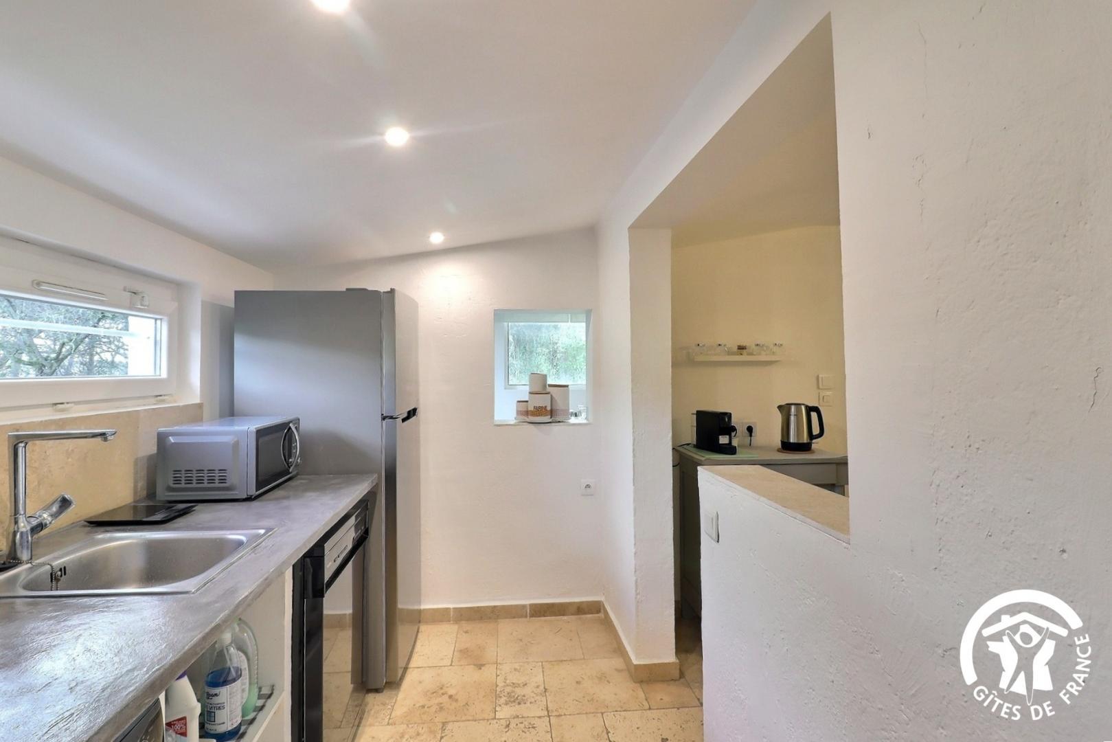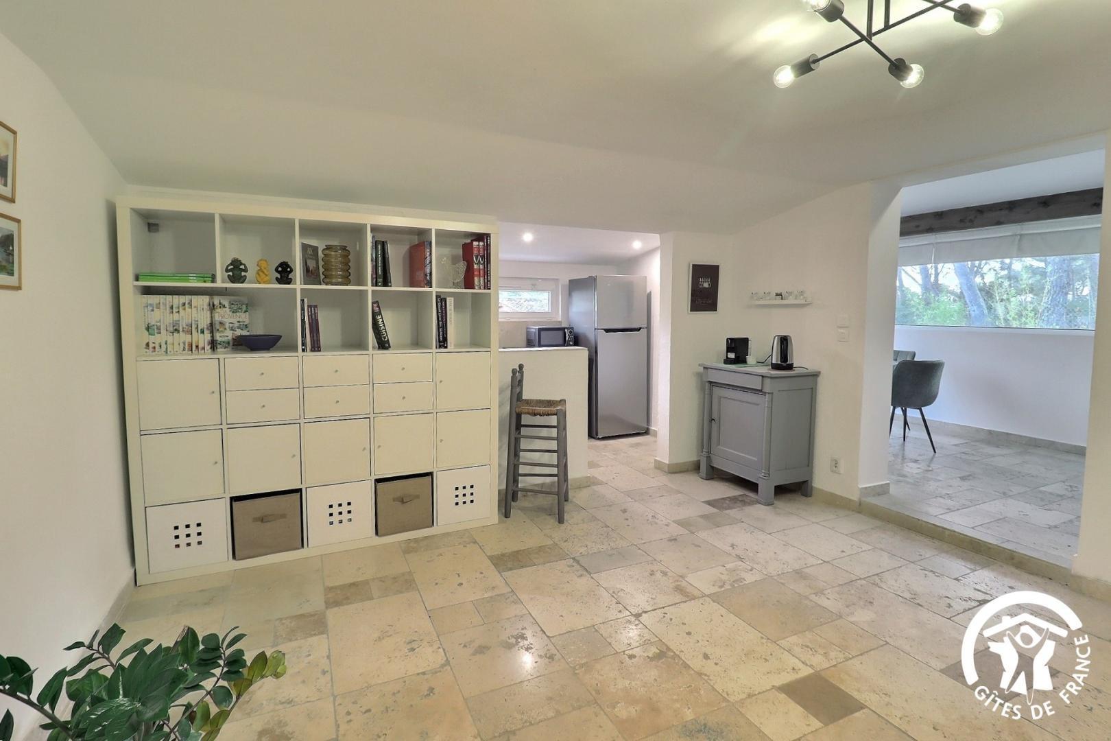 Niché dans la paisible campagne de Lambesc, le gîte Calista tout confort est l'endroit idéal pour une escapade provençale en couple, en famille ou entre amis. Vous profiterez d'un jardin clos agréable d'environ 1000m² et d'une piscine (8x4m fond progressif max 1m50, au chlore, en eau toute l'année et protégée par une alarme) parfaite pour se rafraîchir lors des chaudes journées d'été. Un espace détente vous permettra de savourer le calme environnant, bercé par les sons de la nature. Idéalement situé, le gîte permet de découvrir les charmes de la Provence : marchés locaux, villages typiques, randonnées, et sites culturels d'Aix-en-Provence à la côte méditerranéenne. Les animaux de compagnie sont les bienvenus, afin que toute la famille puisse profiter du séjour. De nombreux chemins de promenade sont accessibles à proximité. Un lieu authentique et reposant pour des vacances placées sous le signe de la détente et de la douceur de vivre provençale Le gîte est composé de : - Une entrée sur salle à manger, hall avec bibliothèque donnant sur une cuisine ouverte équipée avec réfrigérateur-congélateur, piano 5 feux avec four, micro-onde, machine à café filtre et à dosette Nespresso, bouilloire, grille-pain et divers appareils électroménager, une marche pour accéder ensuite à l'espace salon climatisé avec canapé, 2 fauteuils, TV et coin bureau. - Accessible après une marche, une chambre avec un lit 160x200 et une armoire - Également accessible après une marche, une chambre avec deux lits 90x200 et une penderie - Un WC - Une salle d'eau avec douche à l'italienne et meuble double vasque Parking privatif sur la propriété, WIFI. Ménage, draps et linge de toilette inclus. Animaux acceptés à la demande aux propriétaires.