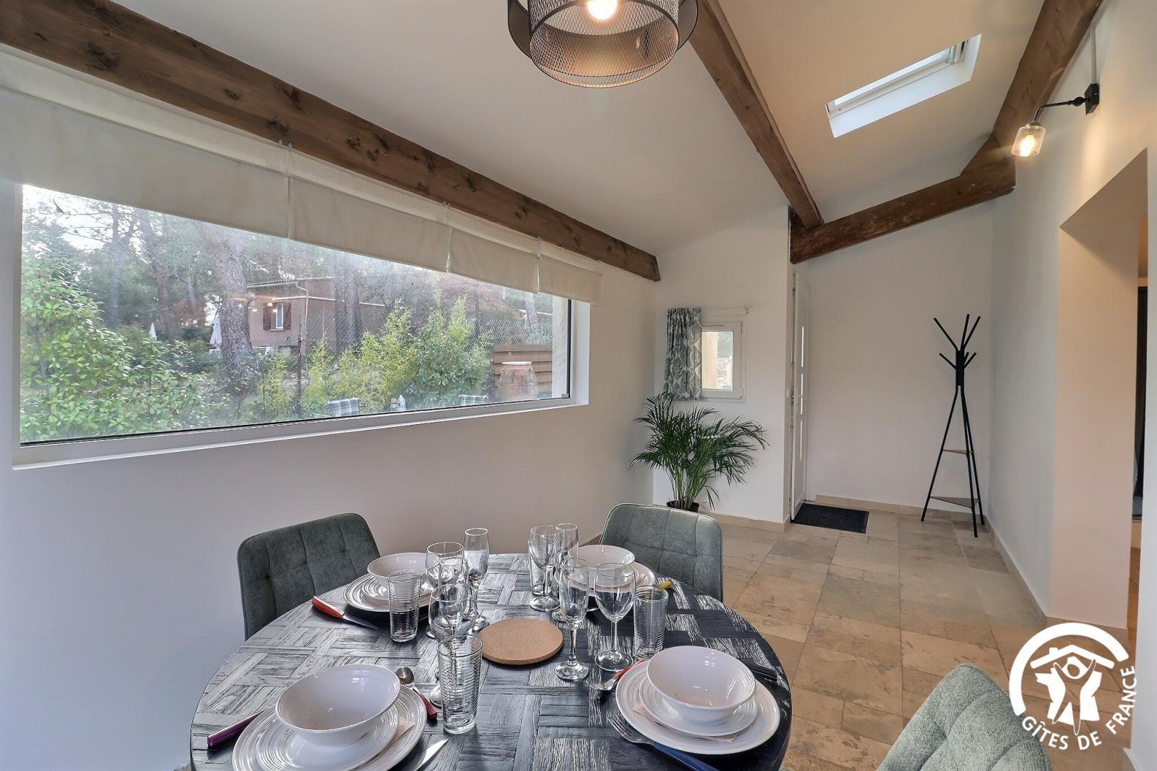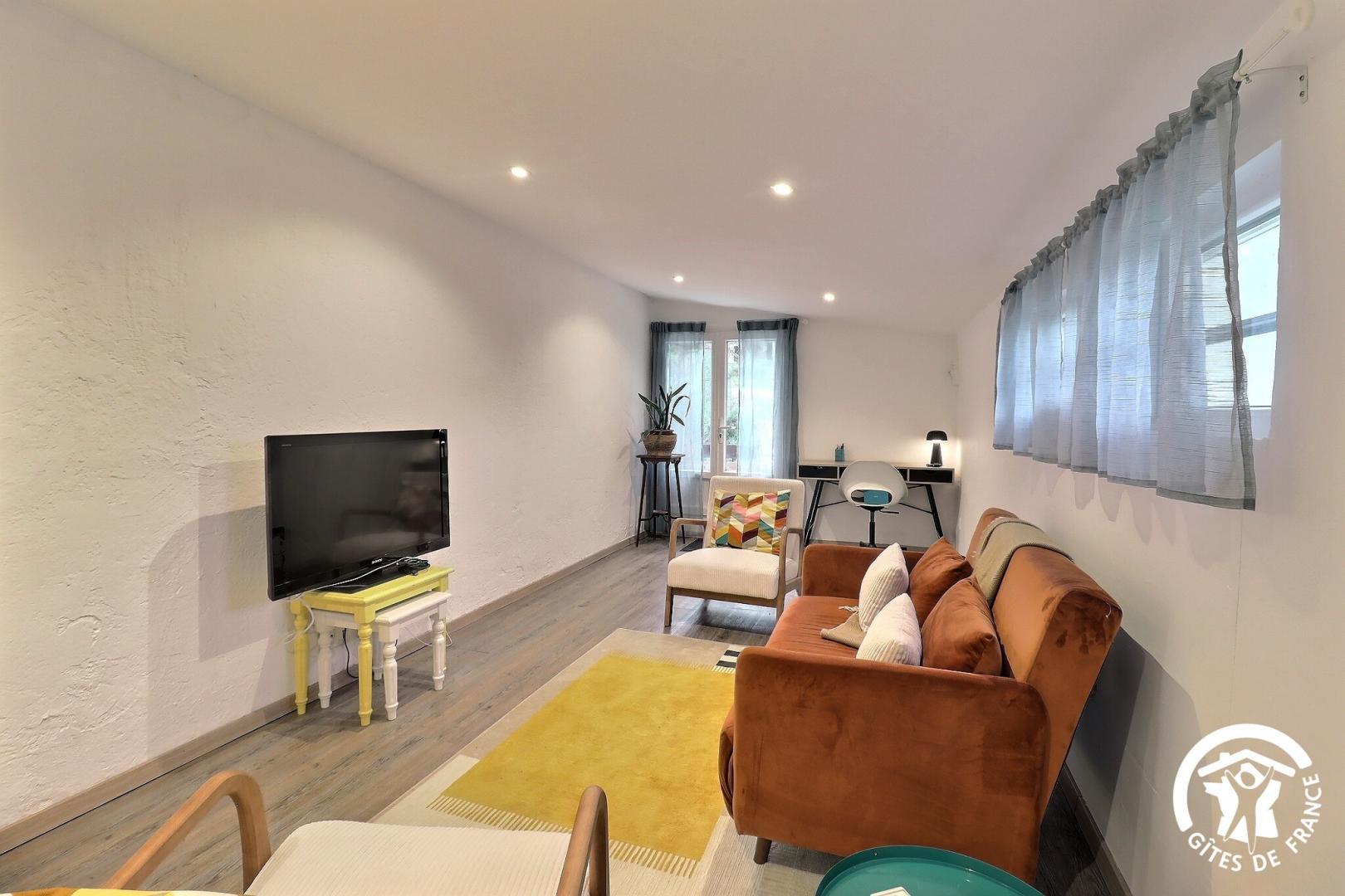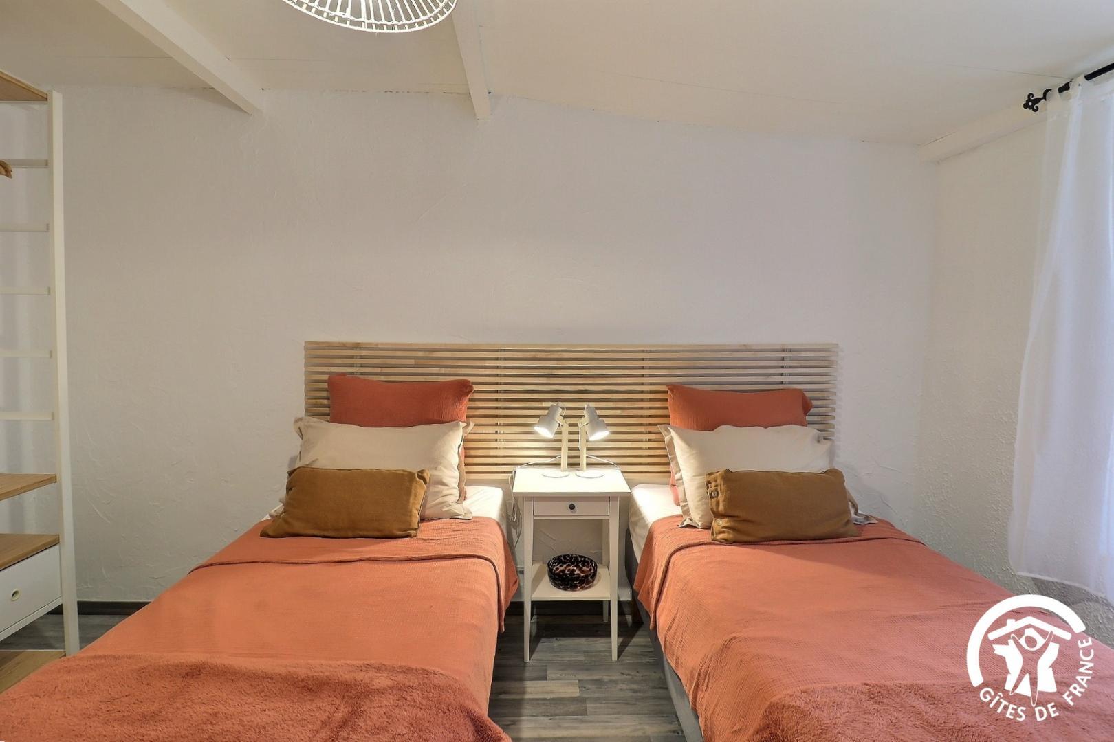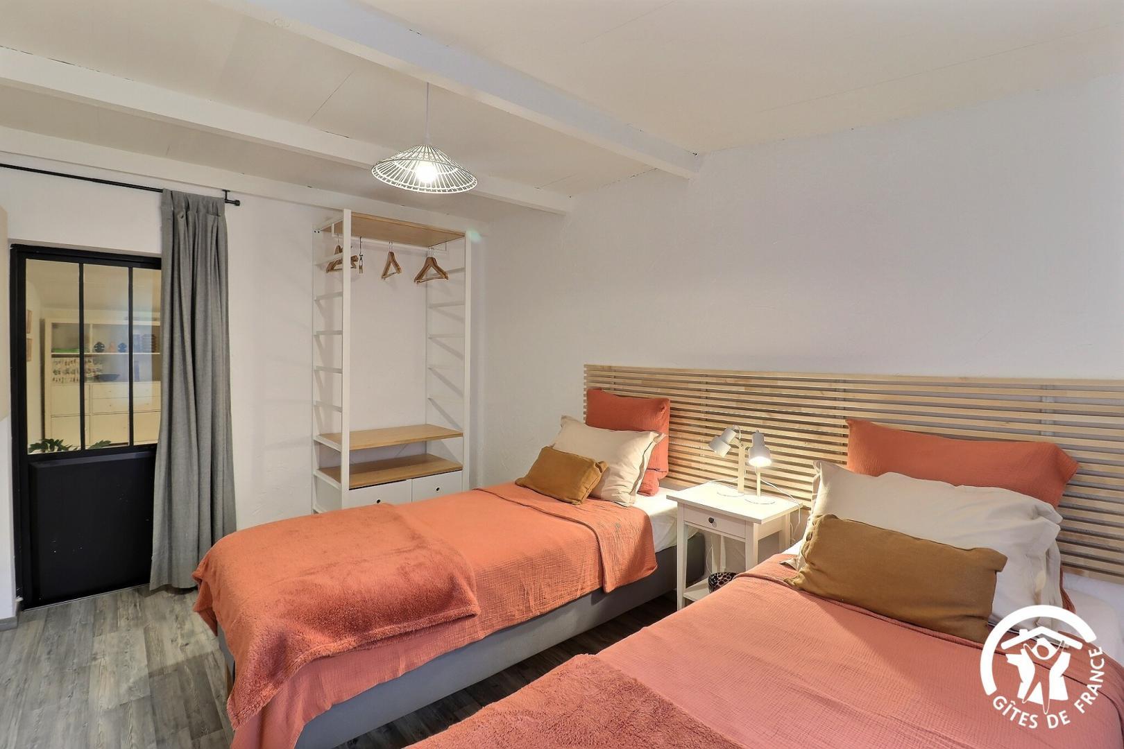 Niché dans la paisible campagne de Lambesc, le gîte Calista tout confort est l'endroit idéal pour une escapade provençale en couple, en famille ou entre amis. Vous profiterez d'un jardin clos agréable d'environ 1000m² et d'une piscine (8x4m fond progressif max 1m50, au chlore, en eau toute l'année et protégée par une alarme) parfaite pour se rafraîchir lors des chaudes journées d'été. Un espace détente vous permettra de savourer le calme environnant, bercé par les sons de la nature. Idéalement situé, le gîte permet de découvrir les charmes de la Provence : marchés locaux, villages typiques, randonnées, et sites culturels d'Aix-en-Provence à la côte méditerranéenne. Les animaux de compagnie sont les bienvenus, afin que toute la famille puisse profiter du séjour. De nombreux chemins de promenade sont accessibles à proximité. Un lieu authentique et reposant pour des vacances placées sous le signe de la détente et de la douceur de vivre provençale Le gîte est composé de : - Une entrée sur salle à manger, hall avec bibliothèque donnant sur une cuisine ouverte équipée avec réfrigérateur-congélateur, piano 5 feux avec four, micro-onde, machine à café filtre et à dosette Nespresso, bouilloire, grille-pain et divers appareils électroménager, une marche pour accéder ensuite à l'espace salon climatisé avec canapé, 2 fauteuils, TV et coin bureau. - Accessible après une marche, une chambre avec un lit 160x200 et une armoire - Également accessible après une marche, une chambre avec deux lits 90x200 et une penderie - Un WC - Une salle d'eau avec douche à l'italienne et meuble double vasque Parking privatif sur la propriété, WIFI. Ménage, draps et linge de toilette inclus. Animaux acceptés à la demande aux propriétaires.