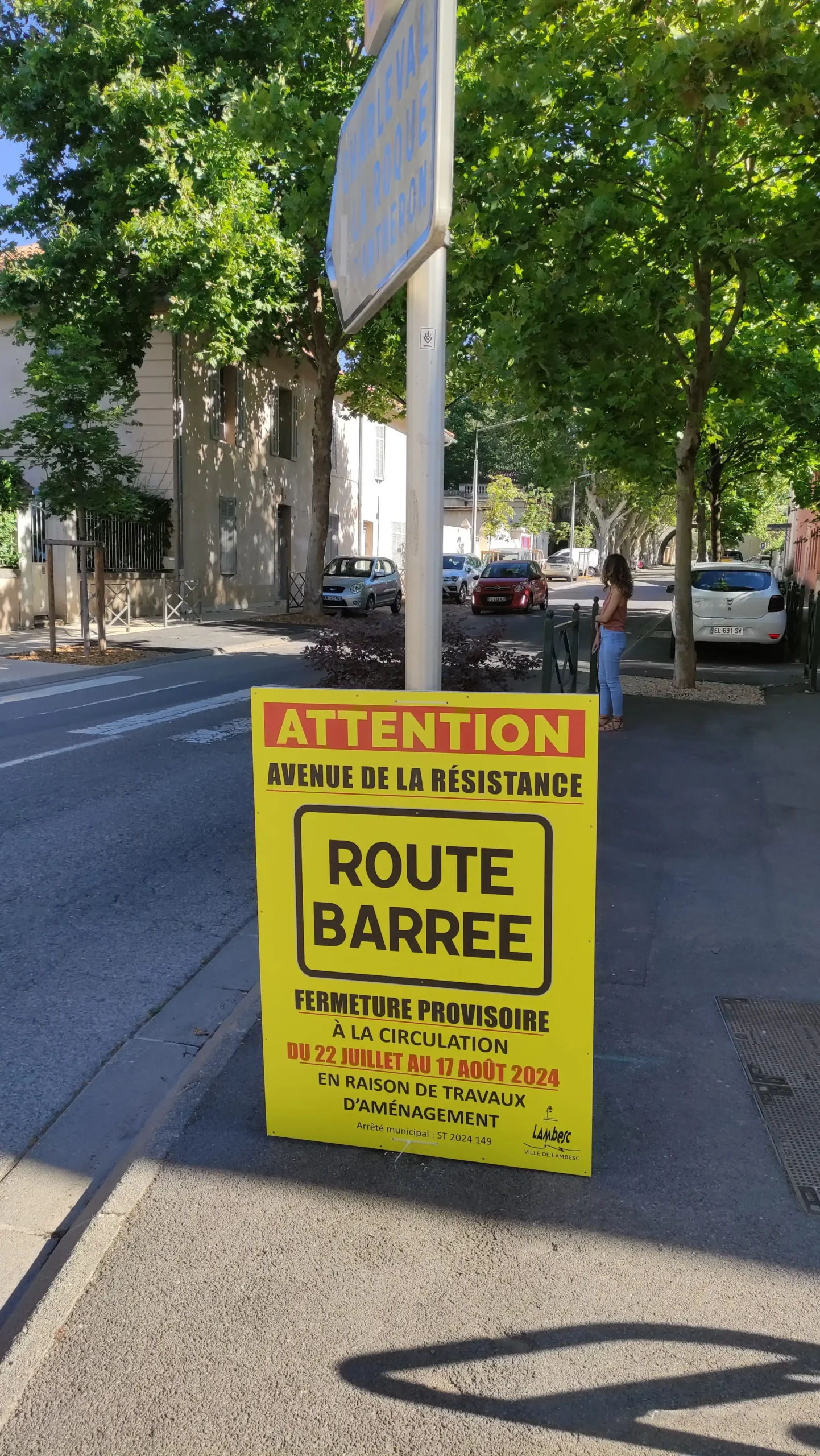 Du 22 juillet au 17 août, l’avenue sera interdite à la circulation et aux stationnements dans sa totalité, soit de la Mairie à l’intersection Route de Charleval / Route de La Roque d’Anthéron.