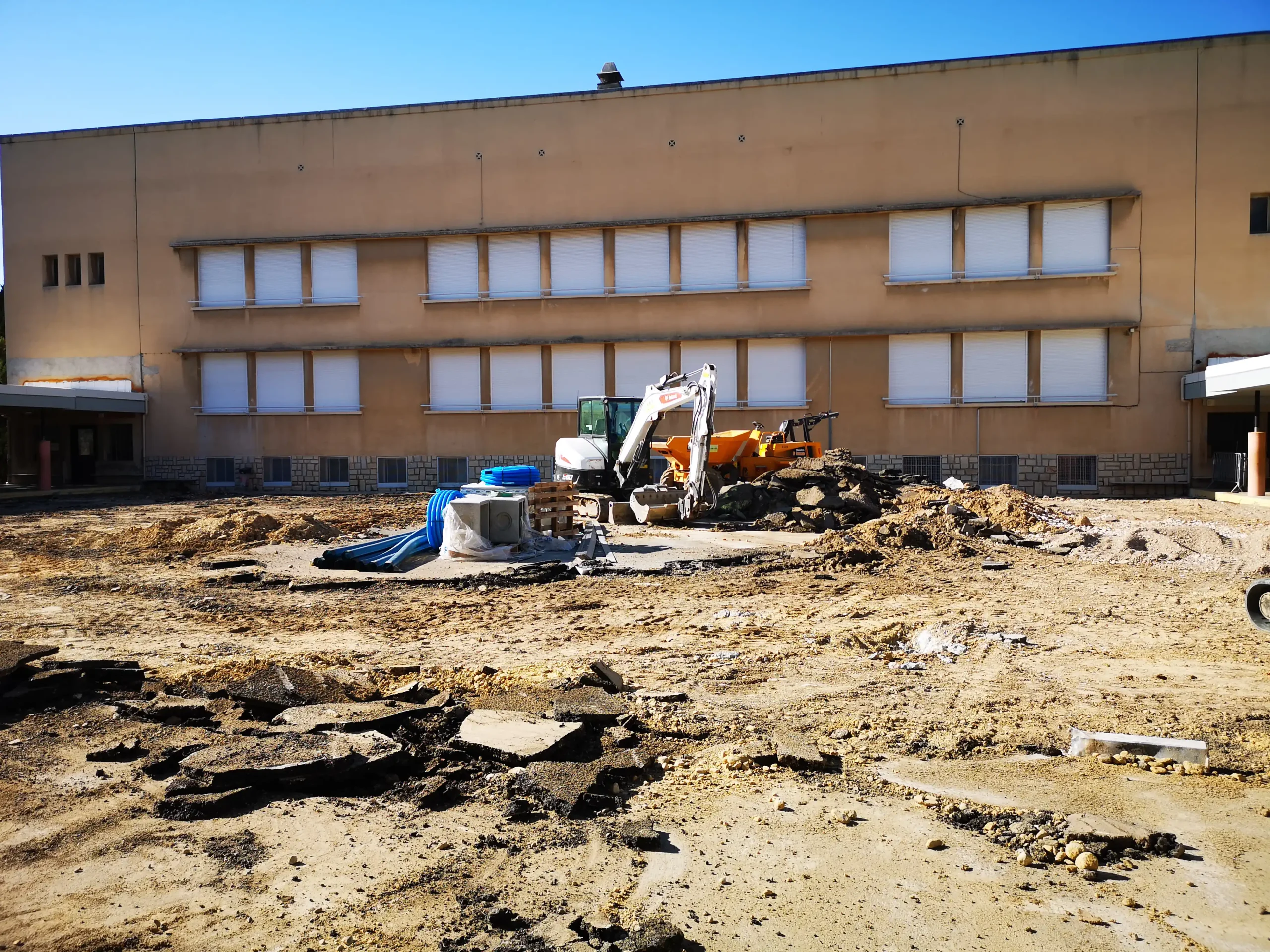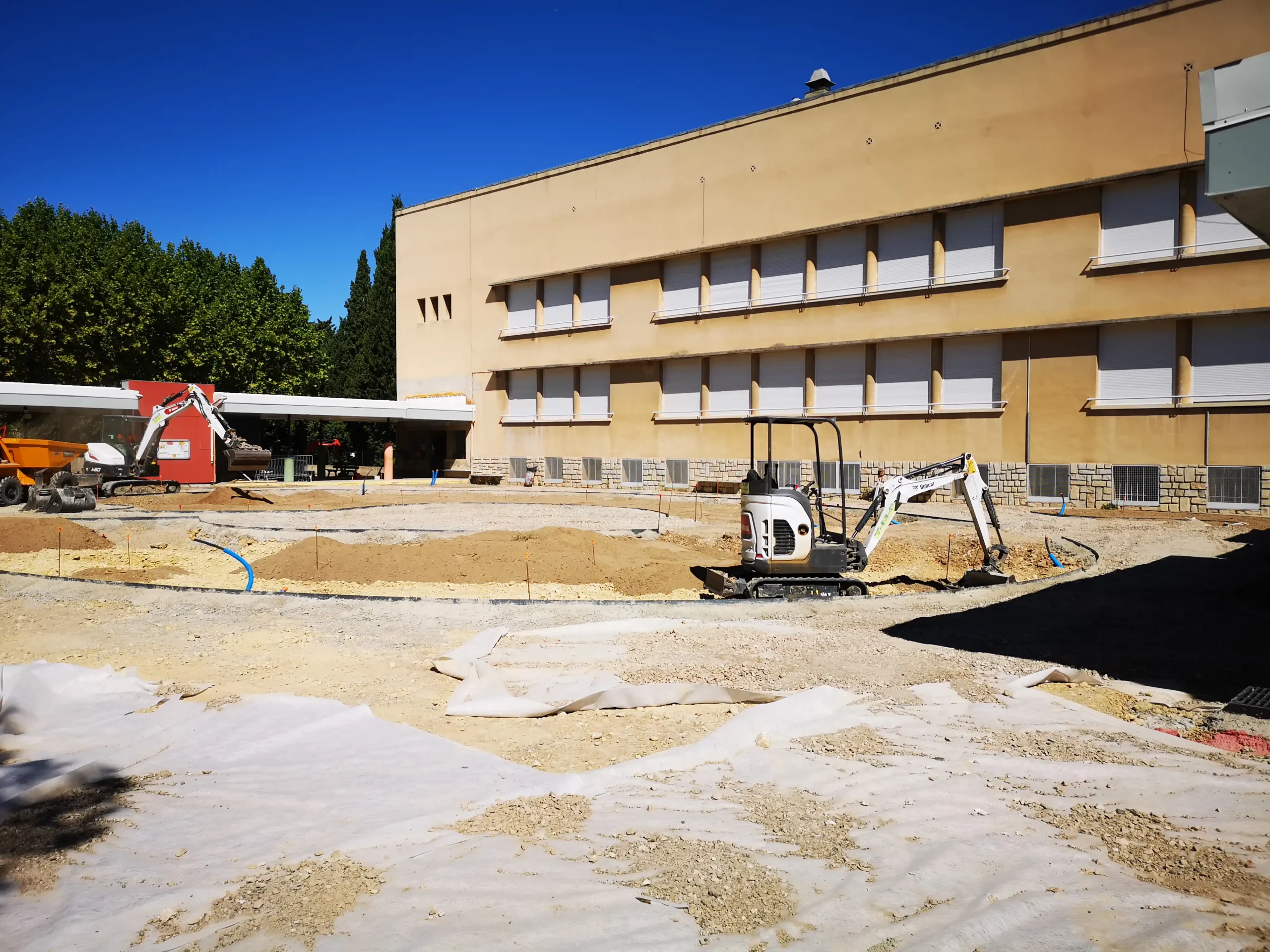 Depuis le début des vacances, la cour de récréation de l’école Prévert est en pleine transformation pour devenir une cour résiliente.