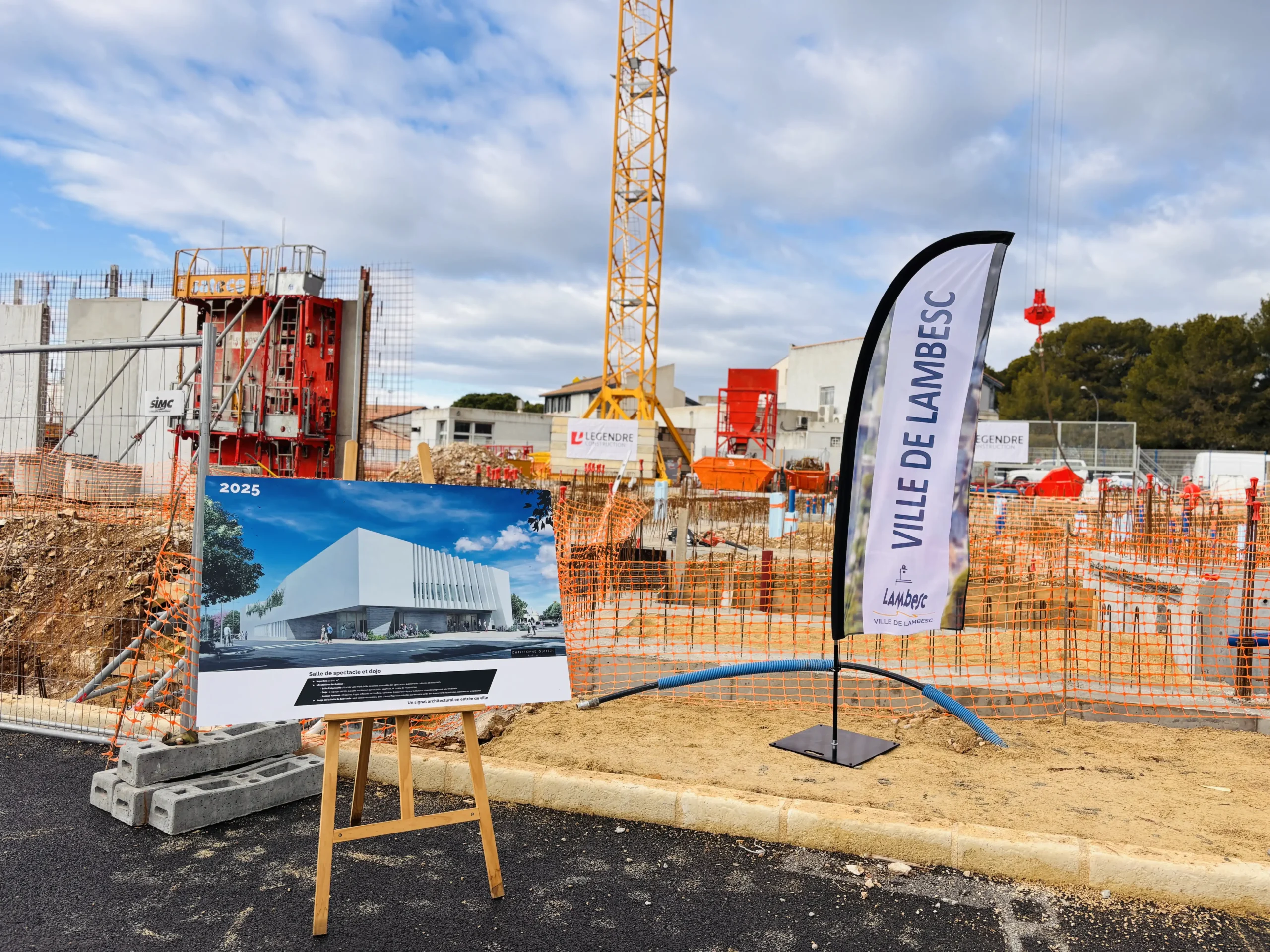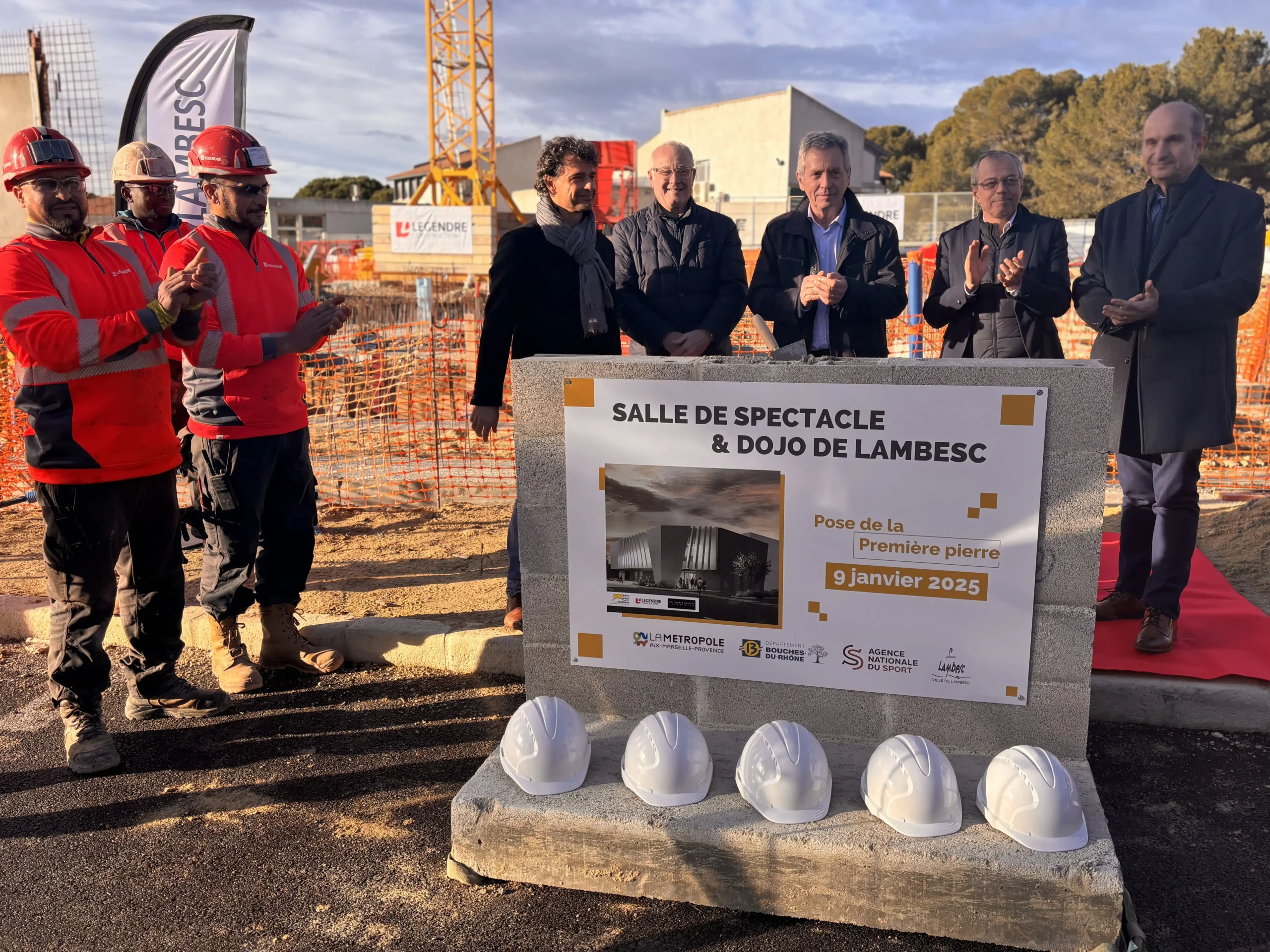 Aussi, ce jeudi 9 janvier, la première pierre a été posée symboliquement par Bernard RAMOND – Maire de Lambesc, en présence d’Éric CHEVALIER – Président du groupe SEMEPA-SPLA et 1er adjoint au Maire d’Aix-en-Provence, Daniel GAGNON – Vice-Président de la Métropole délégué à la Culture et Maire de Cornillon-Confoux, Olivier FREGEAC – Maire de Peyrolles-en-Provence, d’élus lambescains, de présidents d’associations lambescaines ainsi que de Christophe GULIZZI qui a conçu l’architecture de ce nouvel équipement.
